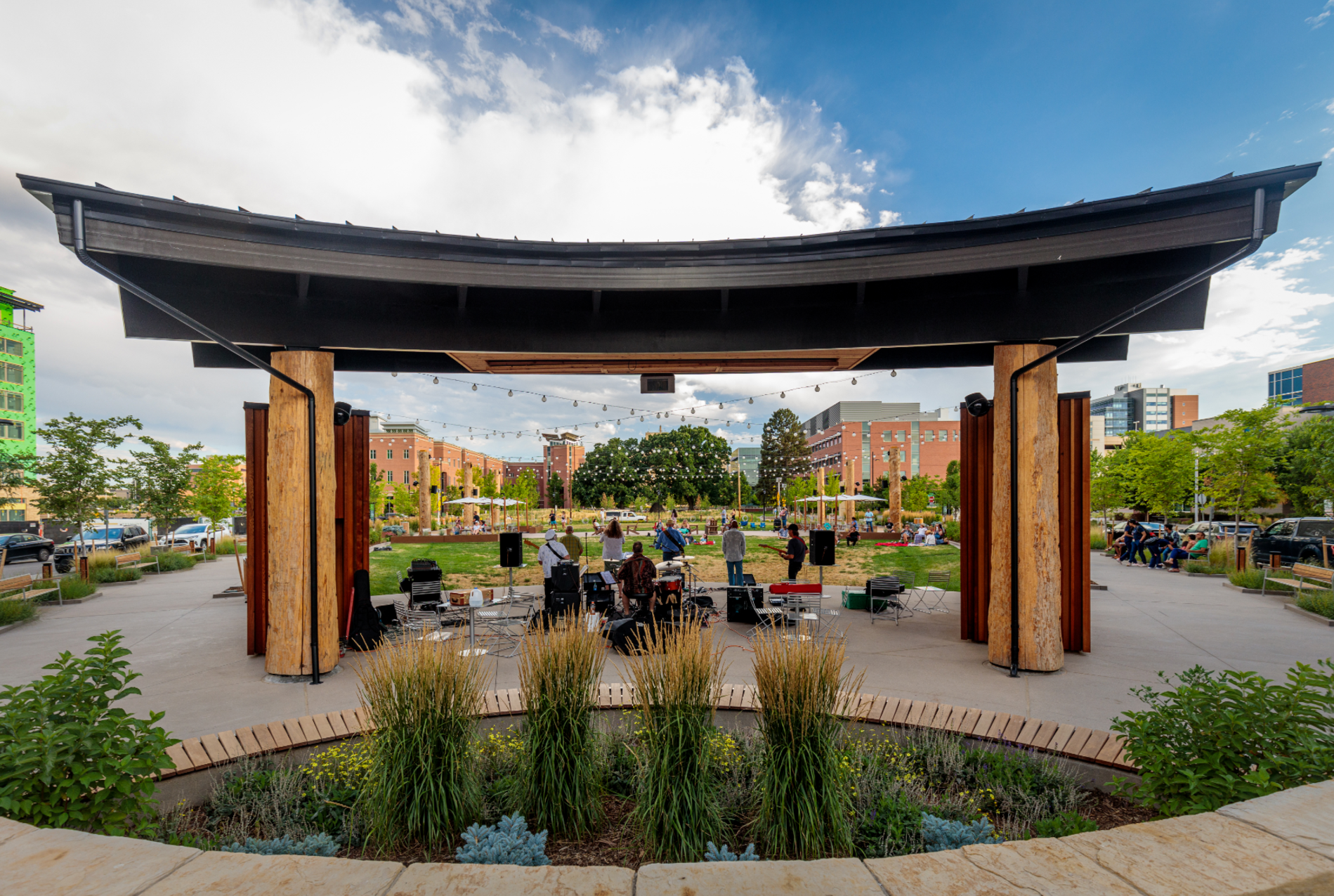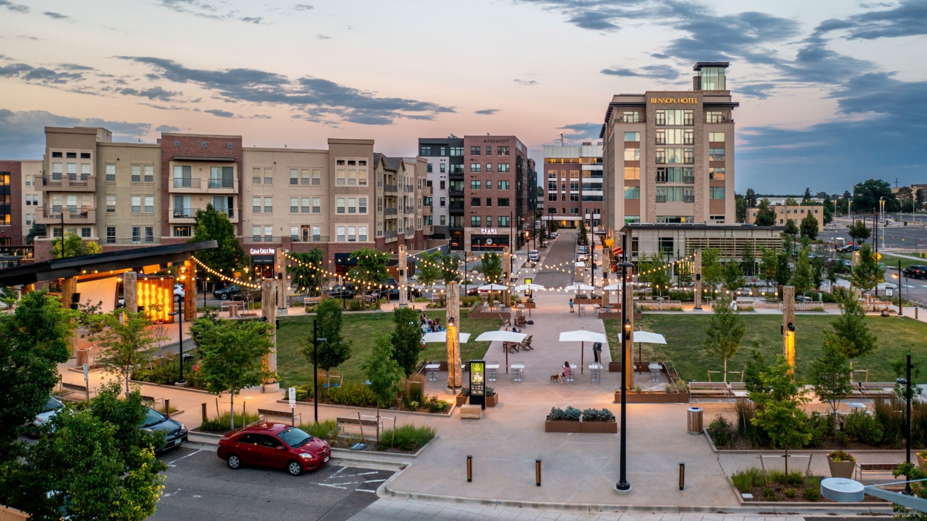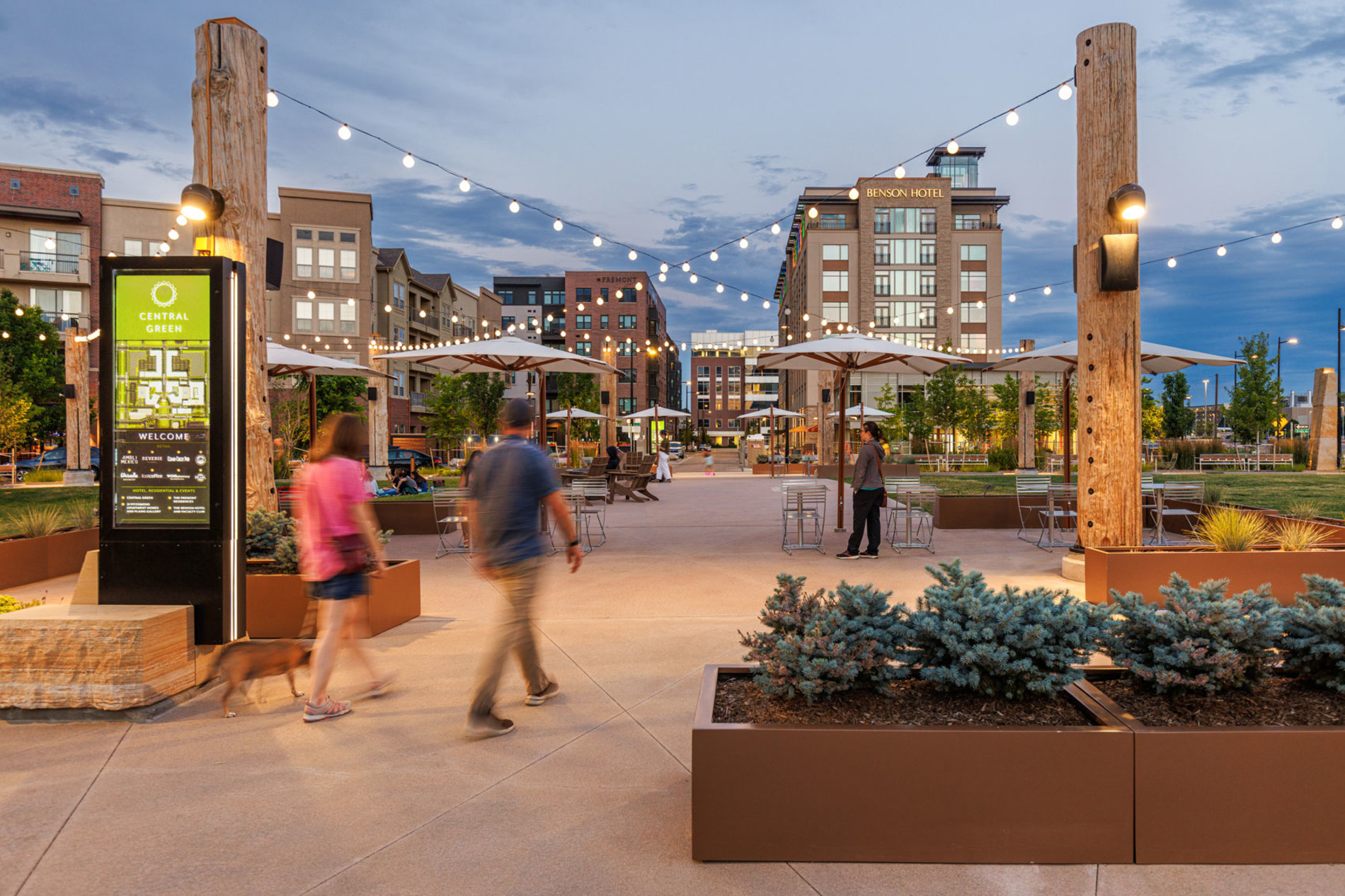 Located adjacent to the Benson Hotel & Faculty Club, the Fremont Residences, and 21 Fitzsimons, Central Green is a signature outdoor space designed for a variety of activities ranging from food trucks, movie nights, yoga or spin classes, holiday festivities, live music and other local events. The canopied performance stage is equipped with high-flexibility sound systems customizable for a variety of outdoor concerts and productions. Open to visitors at all times, the community park space offers a range of seating options, from quiet benches to café tables and fire pits. Infrastructure is in place to transform Central Green into an outdoor ice rink, offering opportunities for enjoyment year-round.