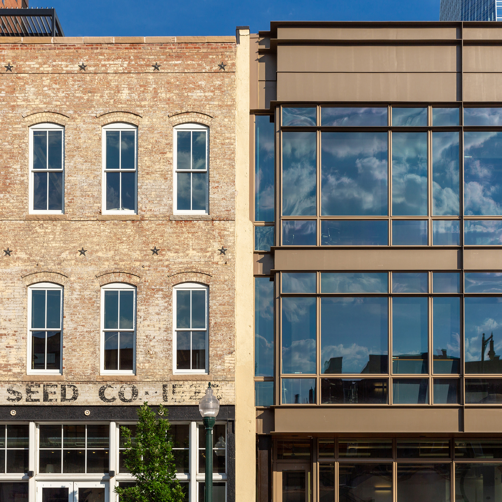 The building's design preserves the historic character of the district through intensely crafted scale and proportion
