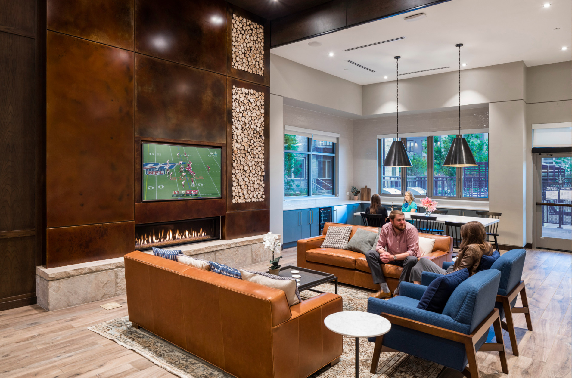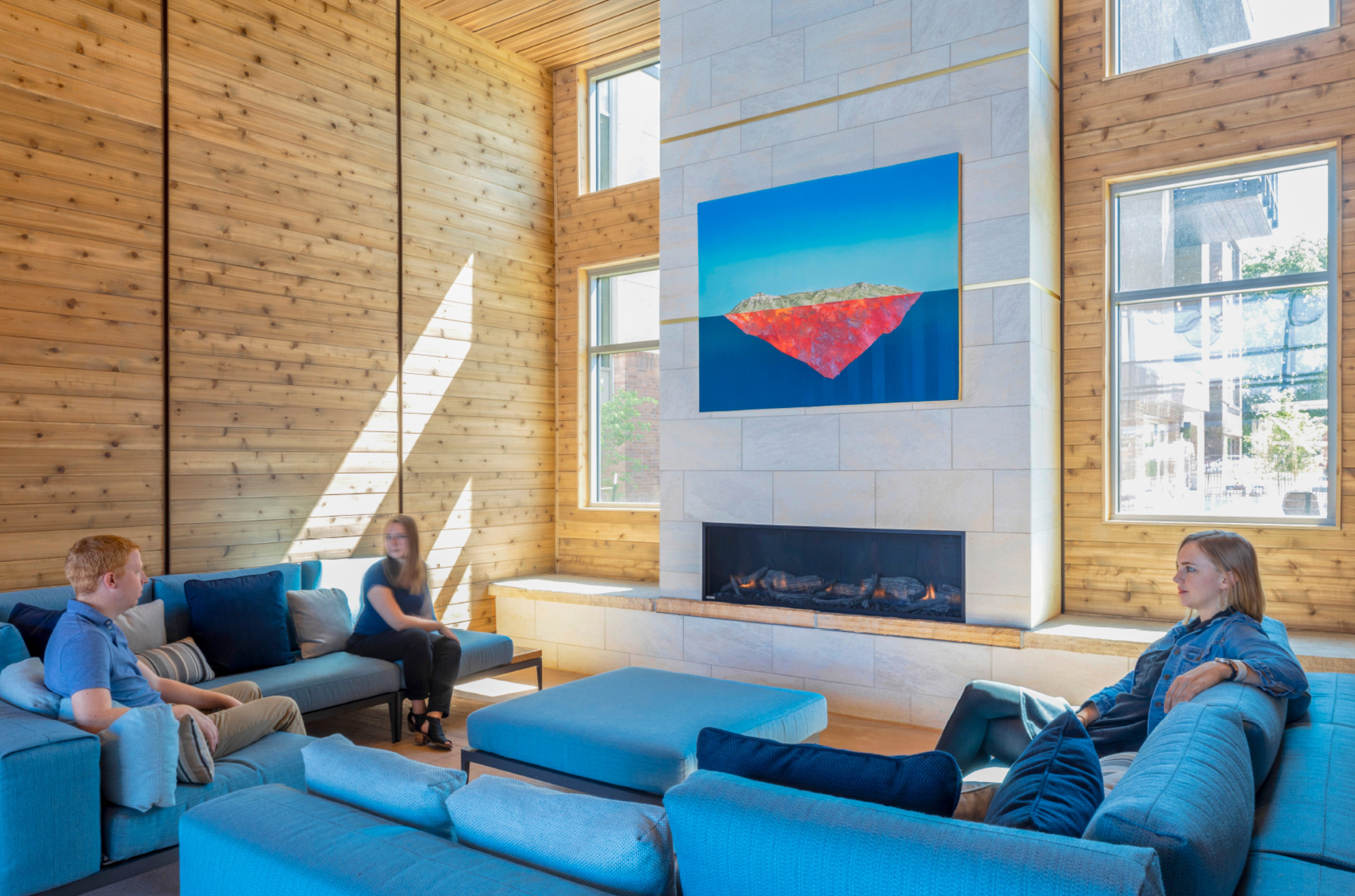 The LEED Gold-certified project features 226 apartments in a variety of sizes and configurations. Ten "outdoor rooms" throughout the property—each with a different ethos and amenity—extend the living space for residents.