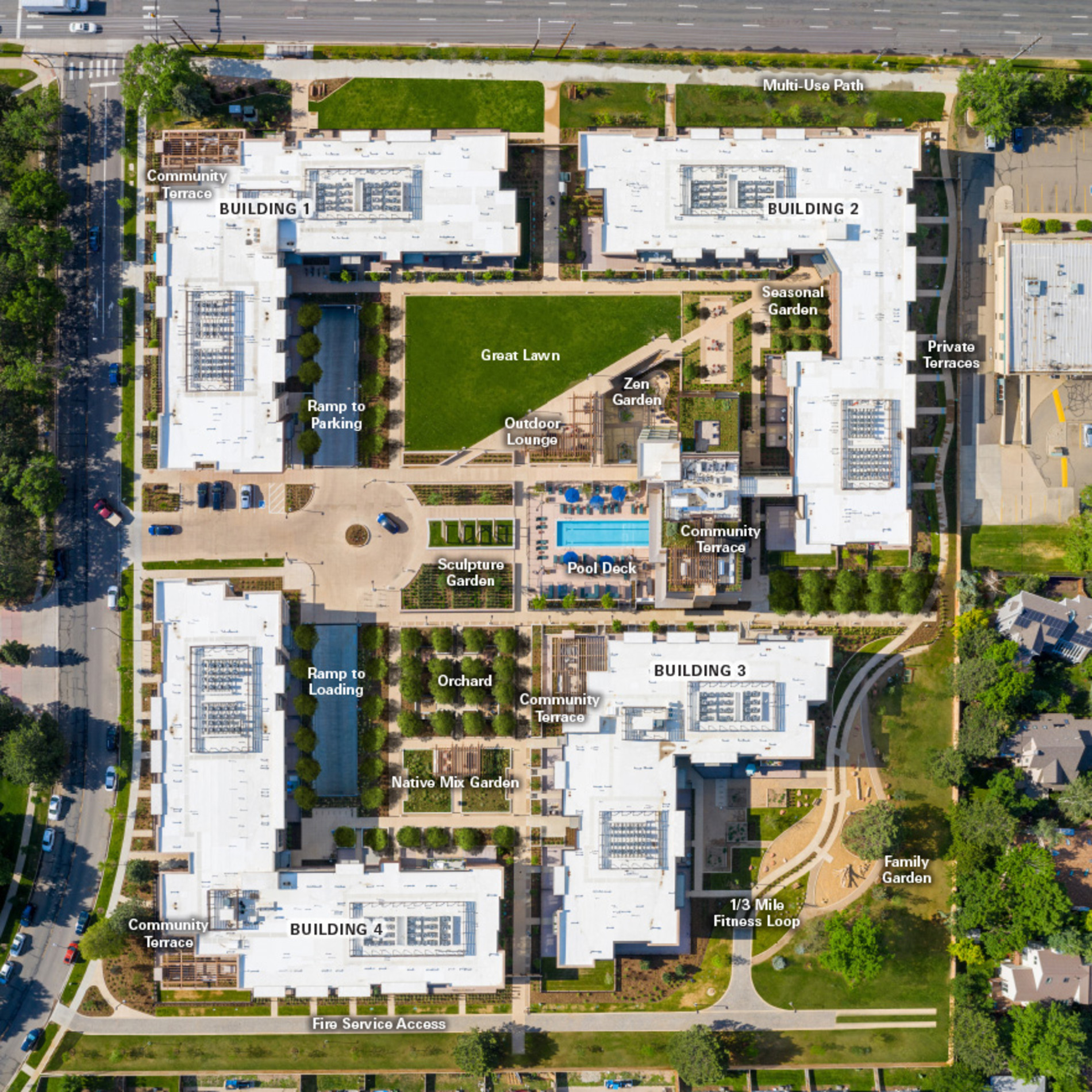 Parc Mosaic Apartment Homes capitalizes on Boulder's location at the intersection of the mountains and plains to create an active, sustainable community with a strong connection to the landscape.