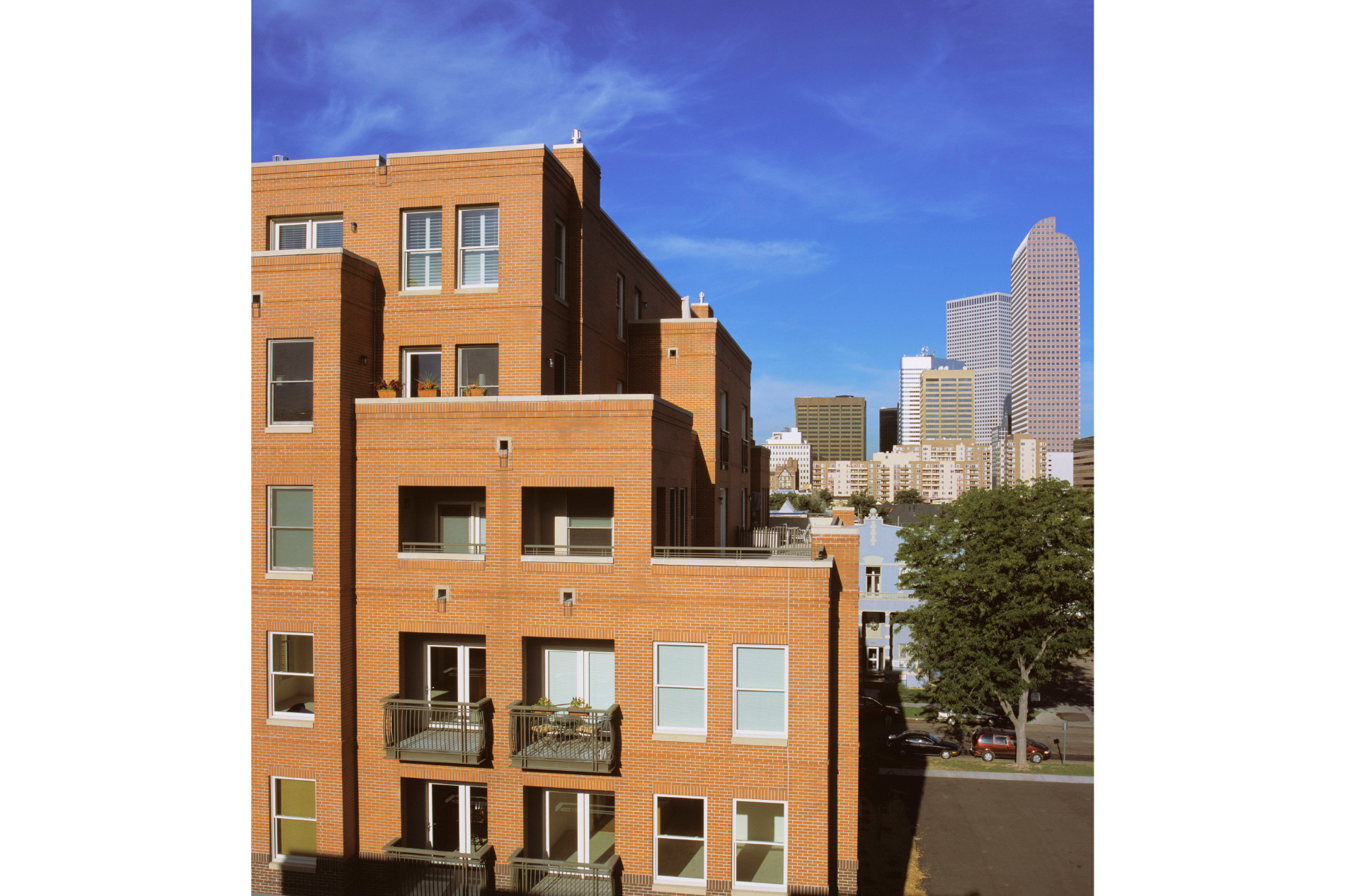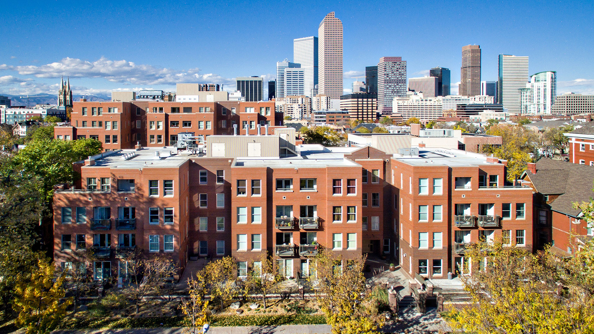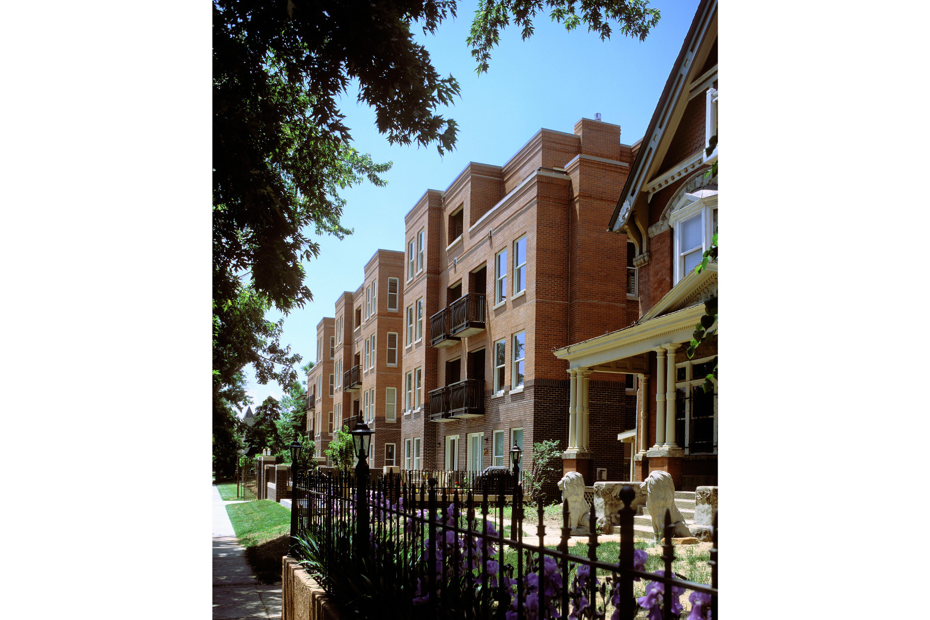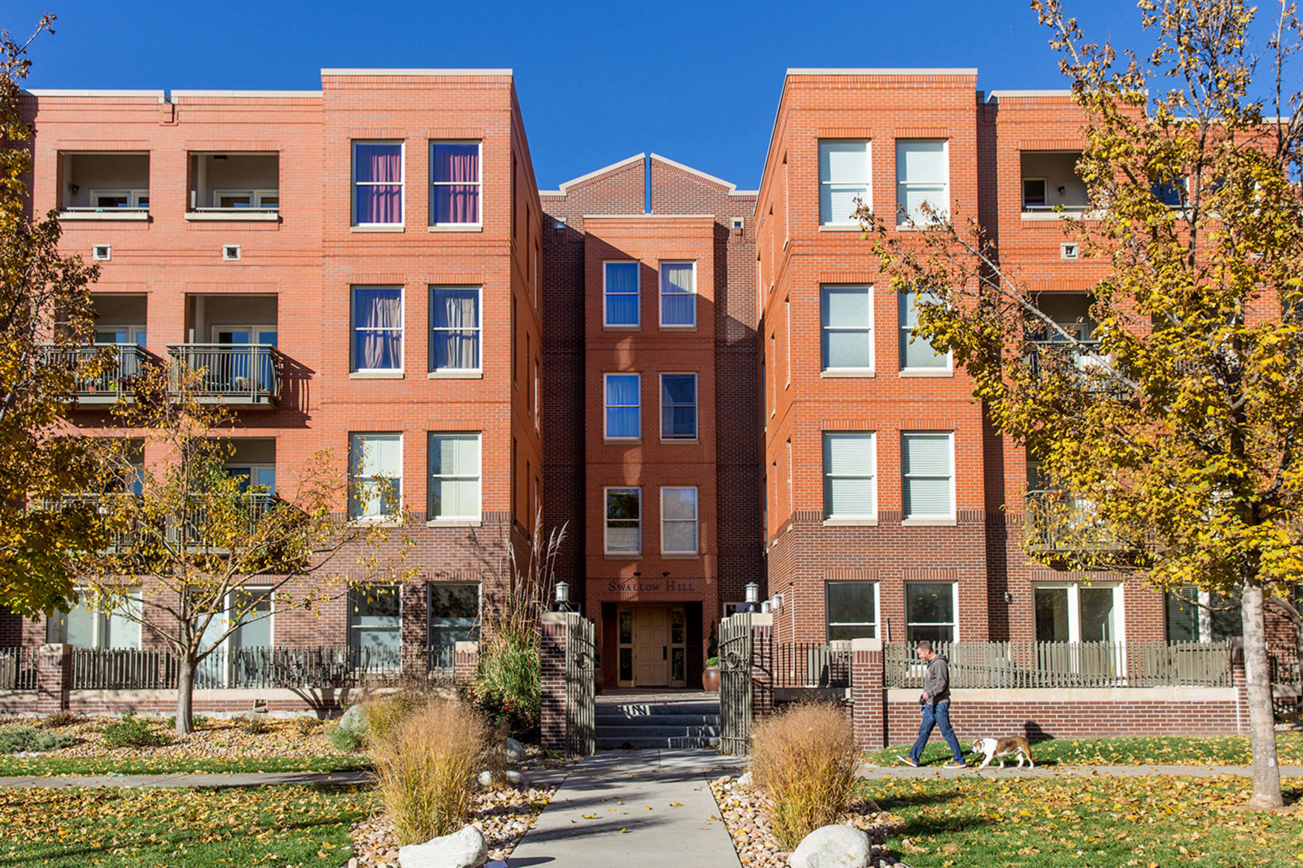 Located on a tree-lined street in Denver’s Historic Uptown Neighborhood, the scale and material of Swallow Hill Residences' two buildings (114 units) directly reflects their historical neighbors. The Clarkson Residences consist of a seven-story, 102,000 SF building with 69 high-end units and underground parking for 107 vehicles. The Emerson Residences consist of a four-story 61,000 SF building with 45 high-end units and 73 underground parking spaces. The new design successfully integrates contemporary density into the historic neighborhood.
