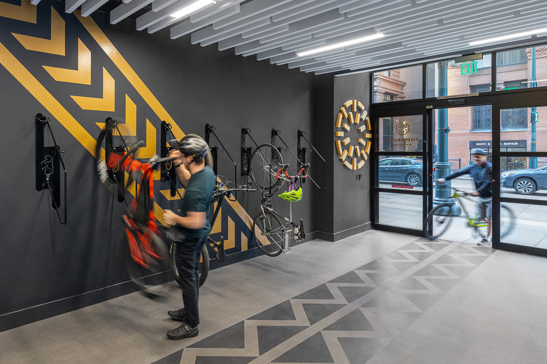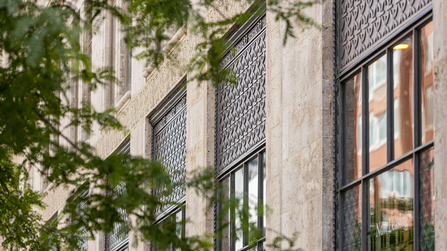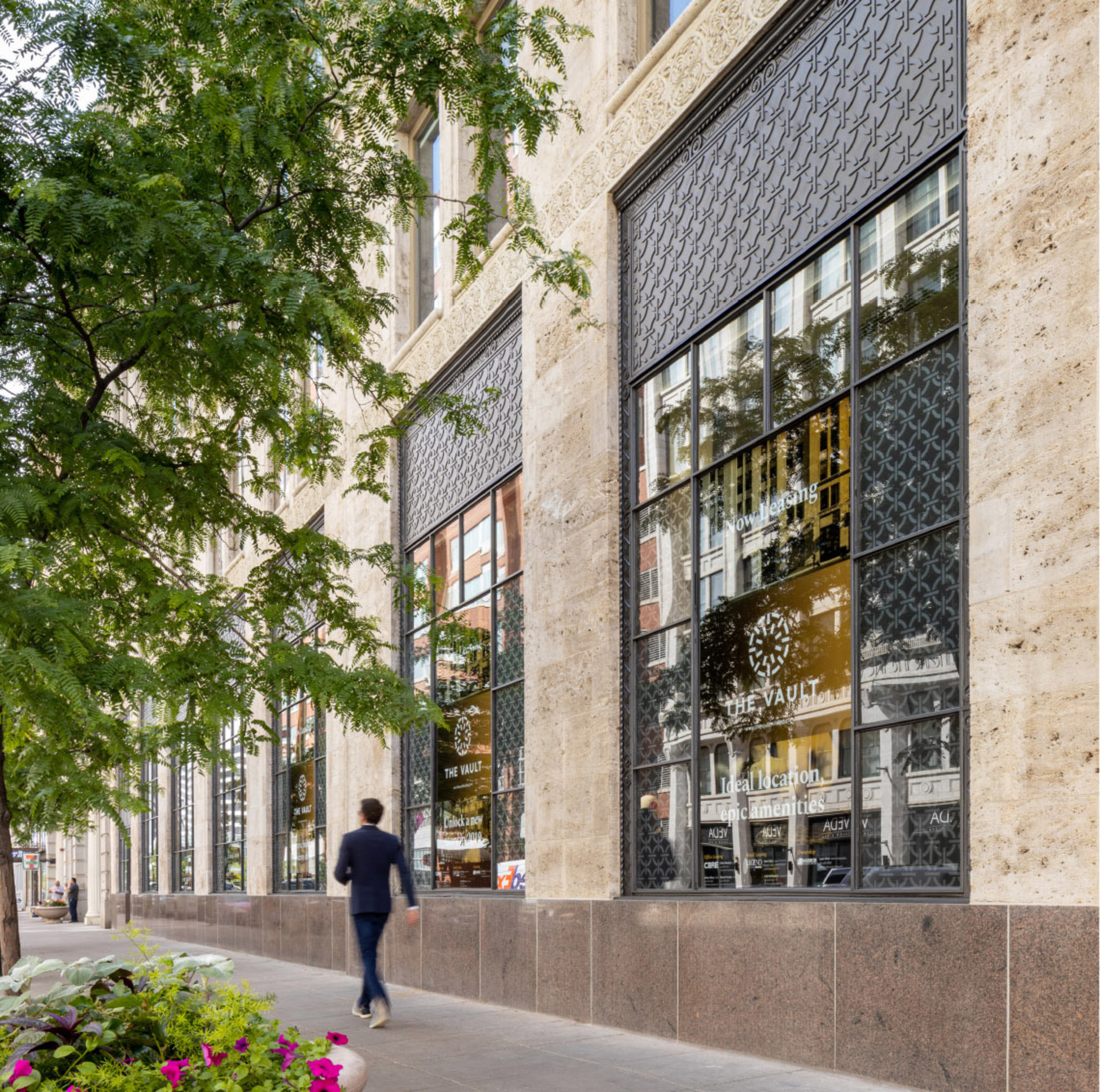 The interiors renovation pays homage to the building's history while adding new amenities and improvements for tenants